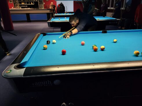 Zawody rozgrywane były w systemie 2 KO. Turniej przebiegał w miłej atmosferze jednak nie zabrakło zaangażowania u zawodników, dzięki temu przy stołach mieliśmy okazję zobaczyć wiele efektownych zagrań, wymian taktycznych i wyrównanych spotkań zakończonych tzw. “deciderami”. W pierwszym półfinale Damian Ejmont (Kętrzyn) po bardzo skutecznej grze wygrał 5:0 z Łukaszem Drożdżem (Giżycko). Drugi półfinał to pojedynek olsztynian, a wyrównany mecz wynikiem 5:3 wygrał Maciej Trudnowski z Piotrem Żejmo. W finale zobaczyliśmy wielkie emocje i wysoki poziom sportowy. Ostatni mecz w turnieju zakończył się po maksymalnej możliwej ilości partii. Damian w ostatniej partii opanował nerwy i po świetnym rozgraniu układu bil wygrał 5:4.