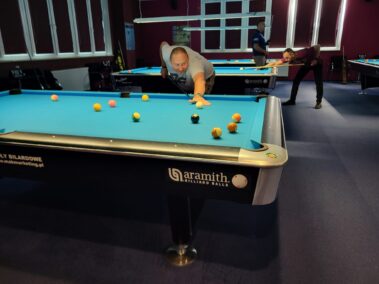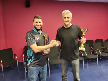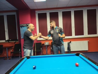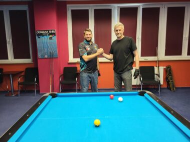 W pierwszym półfinale Przemysław Kwiatkowski (Olsztyn) po efektywnej grze wygrał 5:1 z Tomaszem Wierciszewskim (Węgorzewo). Drugi półfinał to wyrównany pojedynek pomiędzy Michałem Smoczyńskim (Olsztyn) i Łukaszem Drożdżem (Giżycko). W emocjonującej końcówce Michał wygrał 5:3. Rozgrywka finałowa przebiegła dość jednostronnie, a skuteczną grą wykazał się Michał wygrywając 5:2 z Przemkiem. ![]()