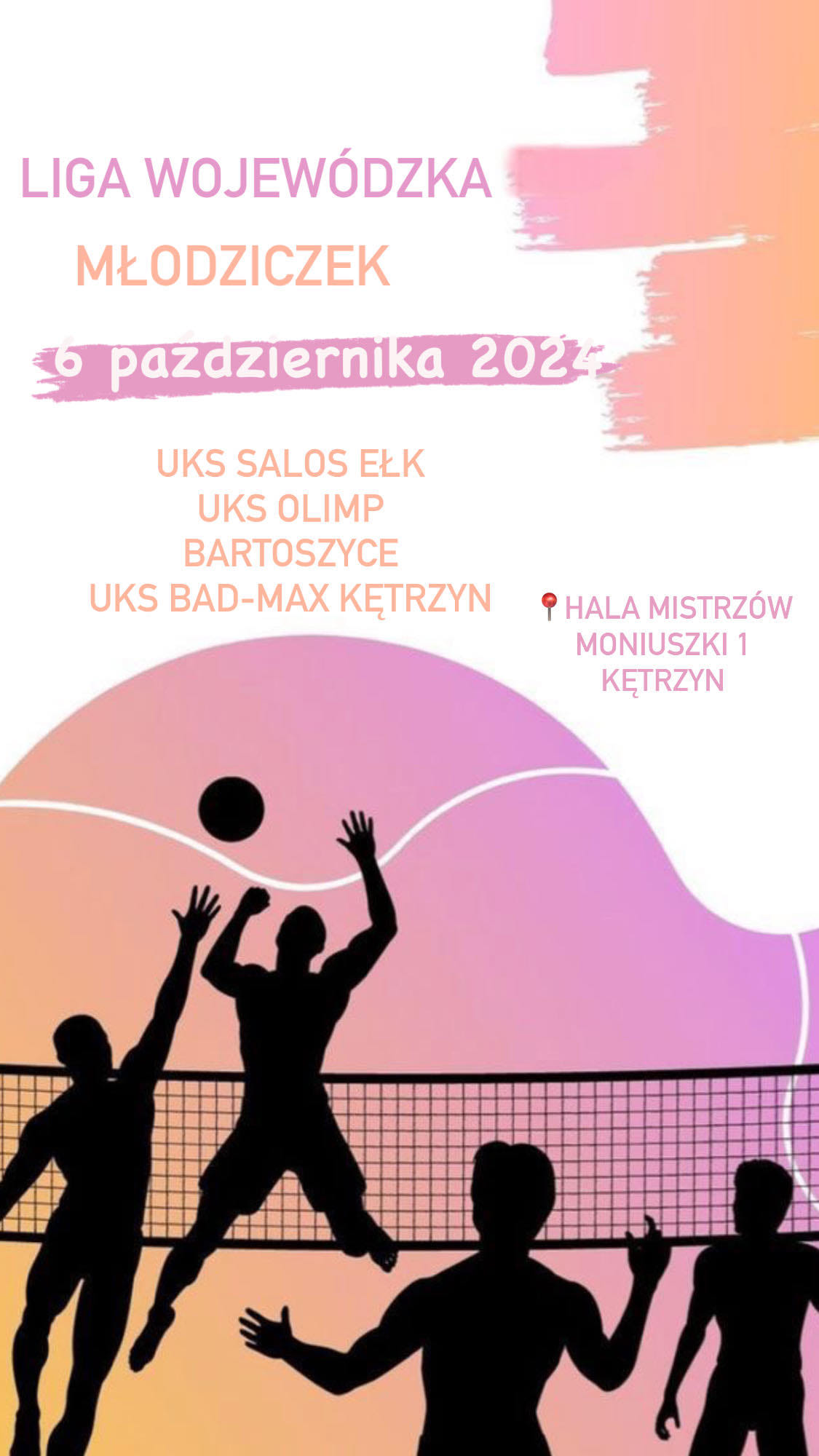 6 października o godzinie 10 w Hali Mistrzów przy ulicy Moniuszki 1 odbędzie się Liga Wojewódzka Młodziczek w piłce siatkowej. Udział wezmą UKS Bad-Max Kętrzyn, UKS Salos Ełk i UKS Olimp Bartoszyce. Zapraszamy do kibicowania.