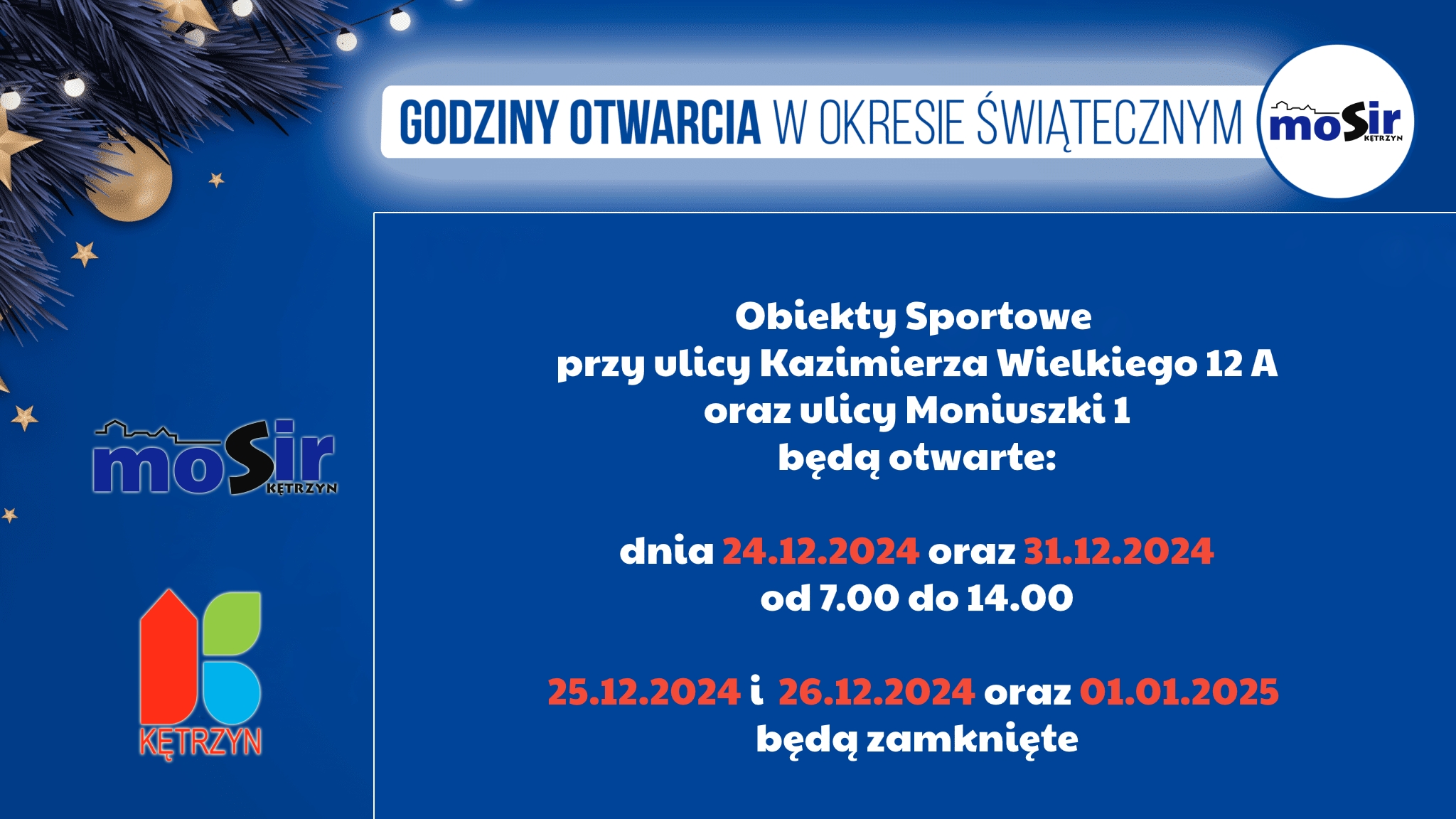 gru202024 Kategoria: Aktualności20 grudnia 2024 Share this post Udostępnij przez WhatsAppUdostępnij przez WhatsApp Udostępnij przez LinkedInUdostępnij przez LinkedIn Przypnij toUdostępnij przez Pinterest Share on XUdostępnij przez X Udostępnij przez FacebookUdostępnij przez Facebook Nawigacja wpisówPoprzedniePoprzedni wpis:Życzenia świąteczneNastępneNastępny wpis:Godziny otwarcia lodowiska w okresie świątecznymPodobne wiadomościKętrzyńskie Biegi “Trójka Niepodległości”30 października 20251 Listopada (Wszystkich Świętych)29 października 2025Eliminacje Miejskie w Halowej Piłce Nożnej Szkolnego Związku Sportowego27 października 2025