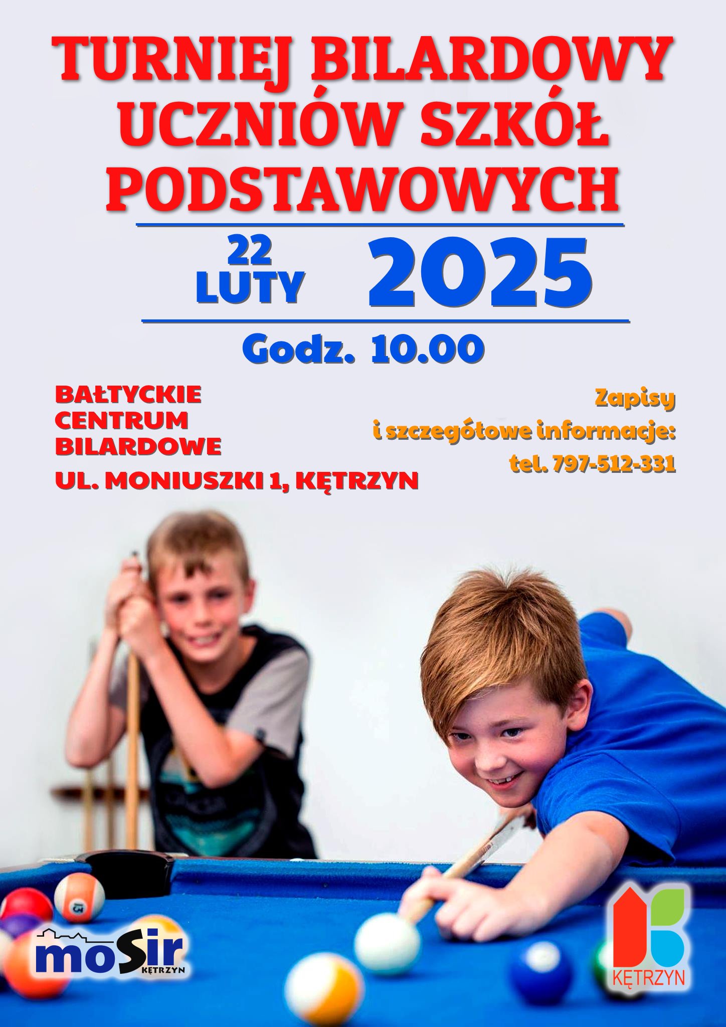 W dniu 22.02.2025 o godzinie 10 odbędzie się Turniej Bilardowy uczniów szkół podstawowych. W zawodach wezmą udział uczestnicy zajęć bilardowych prowadzonych w Bałtyckim Centrum Bilardowym.