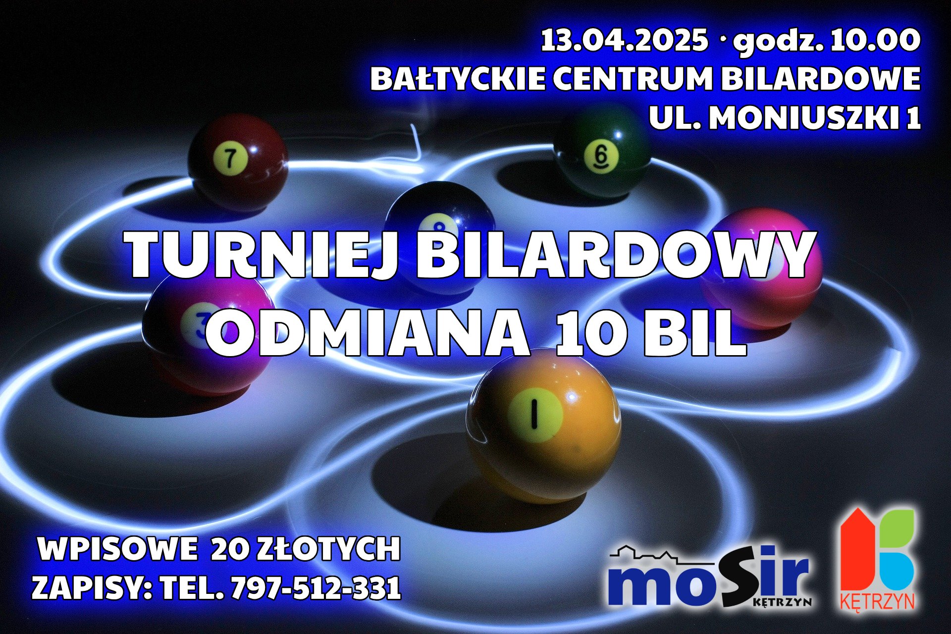W dniu 13.04.2025 roku o godzinie 10 odbędzie się Turniej Bilardowy 10 bil. Klub otwarty od godziny 9. Wpisowe 20 złotych.