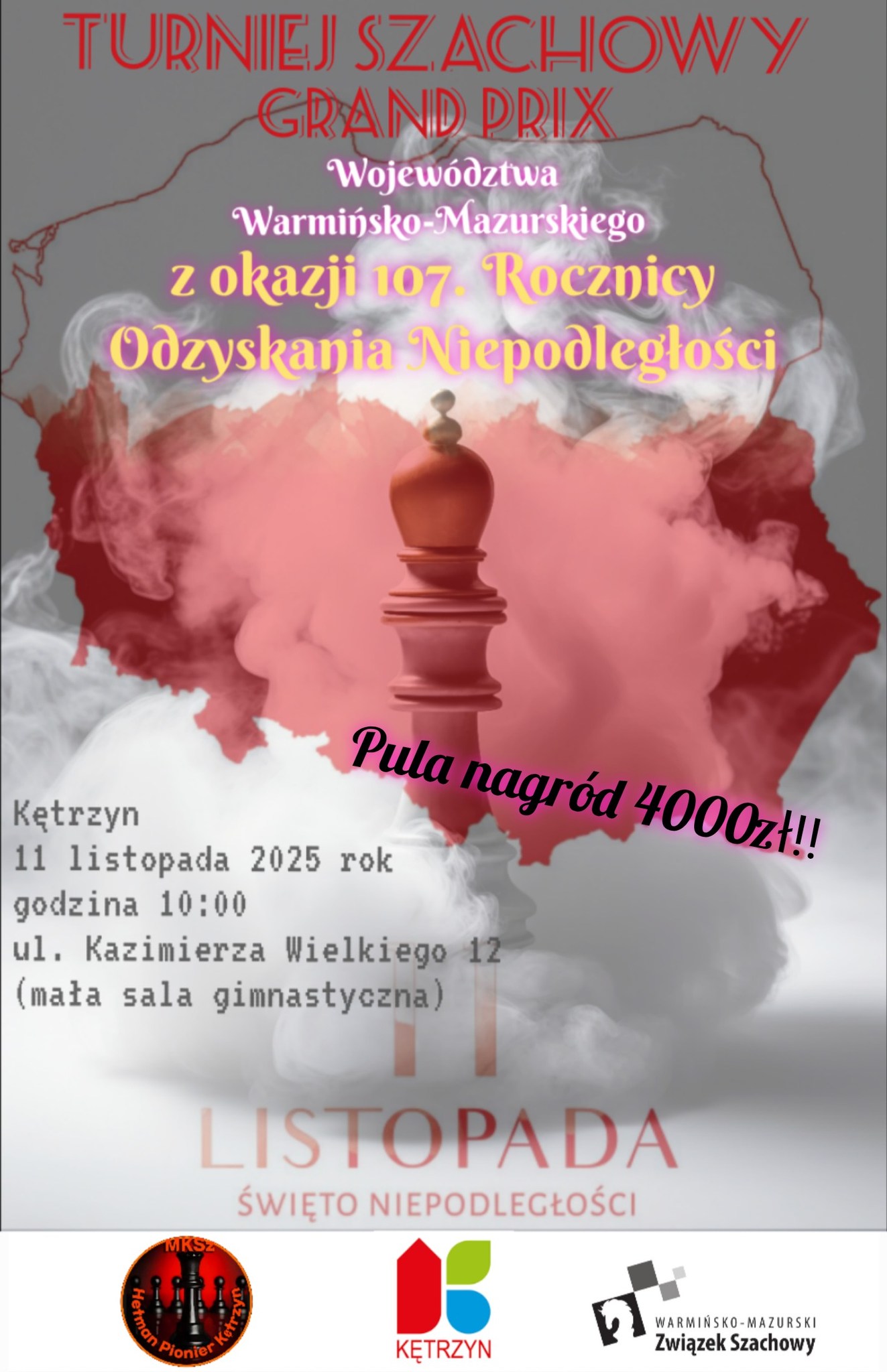 lis72025Kategorie: Aktualności, Szachy7 listopada 2025 Share this post Udostępnij przez WhatsAppUdostępnij przez WhatsApp Udostępnij przez LinkedInUdostępnij przez LinkedIn Przypnij toUdostępnij przez Pinterest Share on XUdostępnij przez X Udostępnij przez FacebookUdostępnij przez Facebook Nawigacja wpisówPoprzedniePoprzedni wpis:Kętrzyńskie Biegi “Trójka Niepodległości”NastępneNastępny wpis:WAŻNY KOMUNIKAT !!Podobne wiadomościWAŻNY KOMUNIKAT !!7 listopada 2025Kętrzyńskie Biegi “Trójka Niepodległości”5 listopada 2025XVIII Mazurskie Morcinki4 listopada 2025