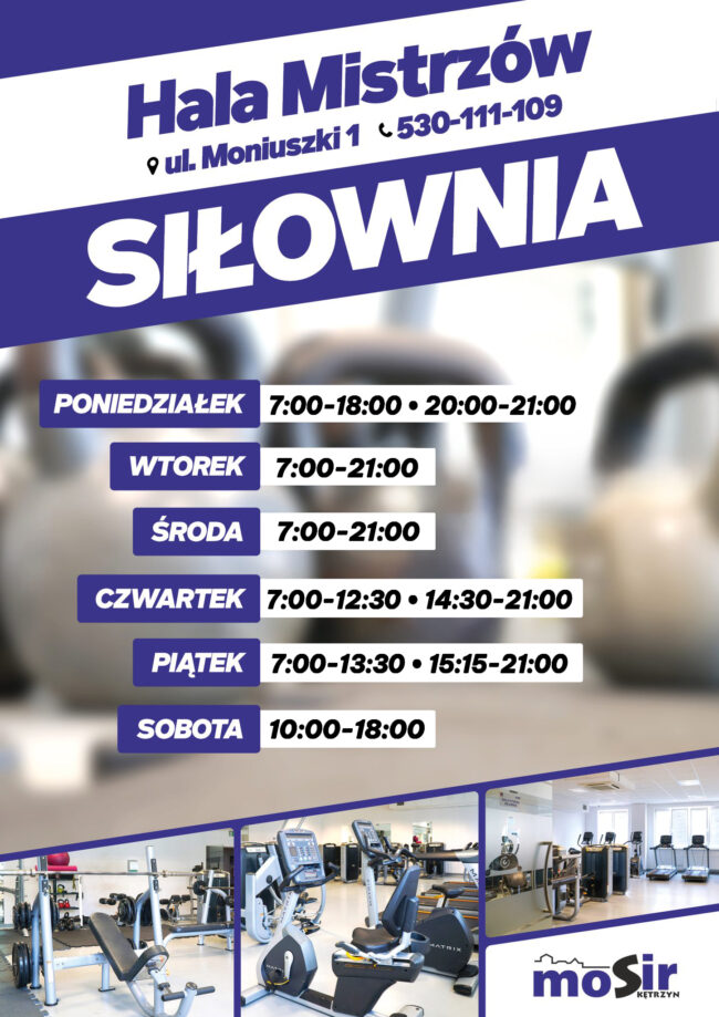 Harmonogram otwarcia siłowni przy ulicy Moniuszki 1